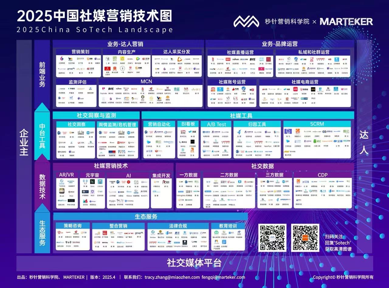 今年度,秒针与Martech领域权威媒体Marteker合作,重启了《社媒营销技术图》征集,经过两个月的资料搜集与行业研究,《社媒营销技术生态图(2025版)》正式发布。